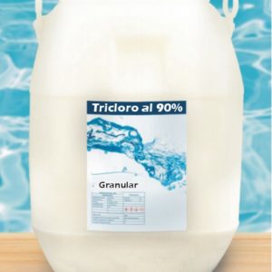 Cloro orgánico estabilizado al 90% de cloro disponible, la característica principal de este producto es la alta permanencia que logra en el agua de las piscinas debido a su máxima concentración de estabilizador que inhibe la acción degradante de los rayos ultravioleta del sol, su mínima concentración de humedad y nula presencia de metales.